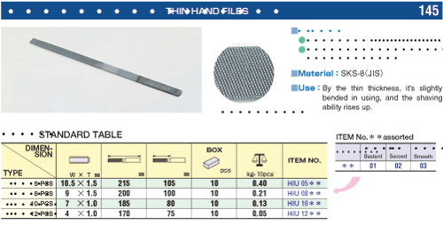 - 薄型扁锉其前端部的柔韧性能提高工作的舒适性。